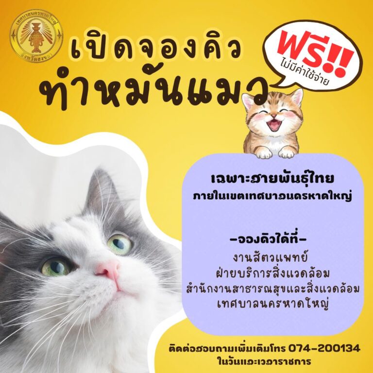 เทศบาลนครหาดใหญ่ เปิดจองคิวทำหมันแมว
