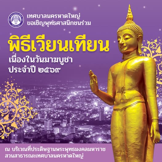 เทศบาลนครหาดใหญ่ ขอเชิญพุทธศาสนิกชนร่วมเวียนเทียนเนื่องในวัน มาฆบูชา ประจำปี 2569