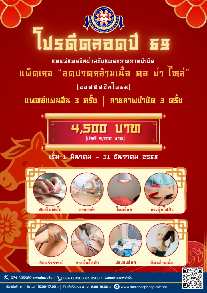 โปรดีตลอดปี แพทย์แผนจีนร่วมกับกายภาพบำบัด แพ็คเกจ “ลดปวดกล้ามเนื้อ คอ บ่า ไหล่” (ออฟฟิศซินโดรม)