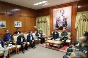 วันที่ 25 กันยายน 2568 เวลา 09.00 น. พลเอก สวัสดิ์ ทัศนา ประธานคณะกรรมาธิการการทหารและความมั่นคงของรัฐ นายสมบูรณ์ หนูนวล รองประธาน คนที่หนึ่ง ร้อยตำรวจเอก ฉลอง ทองนะ รองประธาน คนที่สอง นายไชยยงค์ มณีรุ่งสกุล โฆษกและเลขานุการคณะกรรมาธิการ นายนิรุตติ สุทธินนท์ ที่ปรึกษาคณะกรรมาธิการ นายวิรัตน์ ธรรมบำรุง ที่ปรึกษาคณะกรรมาธิการ นายธณัชญ์พงศ์ วงศ์มุลาลี กรรมาธิการ ที่ปรึกษากิตติมศักดิ์ นักวิชาการประจำคณะ และอนุกรรมาธิการกิจการทหารด้านความมั่นคงแบบองค์รวม ได้เดินทางไปศึกษาดูงานติดตามและตรวจสอบเกี่ยวกับภารกิจการทหารและงานความมั่นคงแบบองค์รวม ความสัมพันธ์และความมั่นคงชายแดนภาคตะวันตก แรงงานต่างด้าว การหลบหนีเข้าเมือง ยาเสพติด แก๊งคอลเซ็นเตอร์และการใช้โครงข่ายการสื่อสารข้ามประเทศ และอาชญากรรมข้ามชาติที่กระทบต่อความมั่นคงของประเทศ