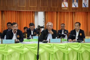 จากนั้น ในเวลา 10.30 – 13.00 นาฬิกา พลตรี เฉลิมพร ขำเขียว รองแม่ทัพภาค 4 คนที่สอง พร้อมด้วยส่วนราชการฝ่ายทหาร ฝ่ายตำรวจ และฝ่ายพลเรือน ได้แก่ (1) ผู้ว่าราชการจังหวัดชุมพรหรือผู้แทน และผู้ว่าราชการจังหวัดระนองหรือผู้แทน (2) ผู้บัญชาการมณฑลทหารบกที่ 44 (3) รองผู้อำนวยการรักษาความมั่นคงภายในจังหวัดชุมพรและจังหวัด (ฝ่ายความมั่นคง) หรือผู้แทน (4) ป่าไม้จังหวัดชุมพรหรือจังหวัดระนอง หรือผู้แทน (5) กำนันตำบลปากจั่น หรือผู้แทน (6) ผู้แทนหน่วยงาน/ส่วนราชการในจังหวัดชุมพรและจังหวัดระนอง (7) ผู้แทนกรมแผนที่ทหาร ร่วมประชุมและแลกเปลี่ยนความคิดเห็นการดำเนินงานที่กระทบต่อความมั่นคงในพื้นที่ สาระสำคัญพบว่า