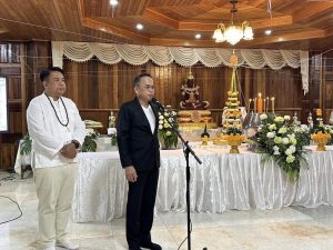 ทั้งนี้ ผู้ว่าราชการจังหวัดสงขลา กล่าวอวยพรพี่น้องประชาชนและพุทธศาสนิกชนชาวหาดใหญ่ จากนั้นนายอำเภอหาดใหญ่ ได้แจกทานด้วยการนำข้าวต้มโจ๊กมาแจกจ่ายให้แก่ผู้เข้าร่วมกิจกรรมสวดมนต์ข้ามปี