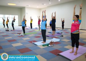 วันพุธที่ 21 สิงหาคม 2567 เทศบาลเมืองคอหงส์ โดยกองการเจ้าหน้าที่ ยังดำเนินการอย่างต่อเนื่องในการจัดกิจกรรมส่งเสริมการออกกำลังกายในคลาสโยคะ ตามโครงการขยับร่างกายของบุคลากรเทศบาลเมืองคอหงส์ ให้กับเจ้าหน้าที่เทศบาล เพื่อส่งเสริมการออกกำลังกายและป้องกันโรคที่อาจจะเกิดจากสภาพการทำงานประจำโต๊ะทำงานตลอดทั้งวันของบุคลากรเทศบาลเมืองคอหงส์ โดยได้รับการสนับสนุนงบประมาณจากกองทุนหลักประกันสุขภาพเทศบาลเมืองคอหงส์ และได้รับเกียรติจาก นางอรวรรณ วัฒนกุล พยาบาลวิชาชีพชำนาญการ จากกองสาธารณสุขและสิ่งแวดล้อม เป็นผู้นำการฝึกโยคะ ณ ฮอลล์ ชั้น 5 สำนักงานเทศบาลเมืองคอหงส์
