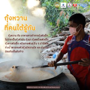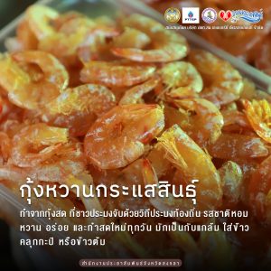 กุ้งหวาน ทำจากกุ้งสด ที่ชาวประมงจับด้วยวิถีประมงท้องถิ่น รสชาติหอม หวาน อร่อย และทำสดใหม่ทุกวัน มักเป็นกับแกล้ม ใส่ข้าวคลุกกะปิ หรือข้าวต้ม