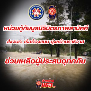 กู้ภัยหาดใหญ่ จัดทีมกู้ภัยพร้อมเรือท้องแบน เดินทางไปช่วยเหลือผู้ประสบอุทกภัย จ.นราธิวาส