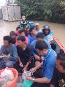เมื่อสักครู่ที่ผ่านมา หน่วยกู้ภัยมูลนิธิมิตรภาพสามัคคี (ท่งเซียเซี่ยงตึ๊ง) หาดใหญ่ ได้รับการ้องขอจนท.กู้ภัยเข้าช่วยเหลือคนงานติดค้างอยู่ที่บ่อเลี้ยงกุ้ง ในพื้นที่ ม.6 ต.คลองเปียะ อ.จะนะ จ.สงขลา ทั้งหมด 13 คน ซึ่งเป็นคนไทย 2 คน คนสัญชาติเมียนมาร์ 11 คน เบื้องต้นรับแจ้งว่าติดน้ำท่วมมา 2 วันแล้ว อาหารและน้ำดื่มที่กักตุนไว้ก็หมดเกลี้ยง ต่อมาเมื่อจนท.เดินทางมาถึง ก็ได้นำเรือท้องแบนเข้าไปช่วยเหลือนำออกมาได้อย่างปลอดภัย