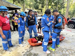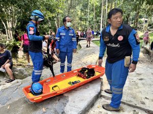 เมื่อวานนี้ (1 มกราคม 2568) เวลา 15.16 น. มูลนิธิมิตรภาพสามัคคี(ท่งเซียเซี่ยงตึ๊ง) หาดใหญ่ ได้รับการประสานจาก สภ.ทุ่งตำเสา ให้จัดทีมช่วยเหลือ นำร่างผู้เสียชีวิตผลัดตกจากน้ำตกโตนงาช้างชั้น3 ลงมาค้างอยู่ระหว่างชั้น 2 และ 3 ซึ่งภูมิประเทศเป็นหน้าผาสูงชัน และน้ำไหลเชี่ยว ทางมูลนิธิฯ จึงได้จัดเจ้าหน้าที่เข้าปฏิบัติงานในครั้งนี้ เมื่อไปถึงจุดเกิดเหตุได้ปรึกษากับ ร.ต.อ.เพลินศักดิ์ มณีสว่าง รองสารวัตร(สอบสวน) สภ.ทุ่งตำเสา ร้อยเวรเจ้าของคดี เพื่อวางแผนงาน หลังจากนั้นได้จัดเตรียมอุปกรณ์ Rope เพื่อทำการไต่หน้าผากลงไปจากความสูงประมาณ 10 เมตร ซึ่งภูมิประเทศค่อนข้างอันตรายเป็นหินลาดชัน และลื่น เมื่อถึงจุดที่นักท่องเที่ยวตกลงไปแล้ว จึงได้หย่อนเปลลงไปนำร่างใส่เปลมัดอย่างแน่นหนา แล้วทีมกู้ภัยที่อยู่ด้านบนค่อยๆดึงเปลขึ้นมาได้จนเป็นผลสำเร็จ ซึ่งใช้เวลาเกือบ 3 ชั่วโมงถึงนำร่างขึ้นมาได้ หลังจากนำร่างขึ้นมาได้เป็นที่เรียบร้อย จึงได้เคลื่อนย้ายนำส่งโรงพยาบาลหาดใหญ่เพื่อทำการชันสูตรอีกครั้ง สำหรับนักท่องเที่ยวที่ผลัดตกลงไปเป็นชาวเมียนมาร์ ทราบชื่อต่อมาชื่อนาย Aung Htike อายุ 31 ปี ทำงานอยู่ที่โรงงานในพื้นที่คลองแห