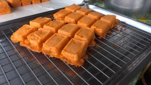 นายเอกลักษณ์ สุขพันธ์ หรือ ฟาเอส กล่าวว่า ขนมนี้เขาเรียกว่าขนมห้อง หรือ ขนมรางรถไฟ ทำมานาน 6 ปี กว่าแล้ว โดยได้สูตรเด็ดมาจากญาติ แล้วก็นำมาปรับแต่งนิด มีวัตถุดิบอย่างดีเช่น มีแป้ง มีไข่ มีน้ำกะทิ เครื่องปรุงสดทุกๆวัน จำหน่ายในราคาที่ไม่แพง เพียง 4 ชิ้น 20 บาท โดยฟาเอส กล่าวต่ออีกว่า ทุกวันจะมีลูกค้ามาอุดหนุน จำนวนมาก บางครั้งก็ทำไม่ทัน เพราะ ว่า ขนมอร่อย