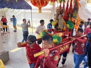 วันที่ 4 มีนาคม 2568 ขบวนนมัสการพระพุทธบาท สระบุรี ที่ได้อันเชิญ องค์โจวซือ องค์เจ้าแม่ลิ้มกอเหนี่ยว องค์แปะกง องค์นาจาไทจื้อ เพื่อออกโปรดสาธุชน และศิษยานุศิษย์ ตามจุดต่างๆ ทั้งขาไปและขากลับ ได้เดินทางจุดนัดหมายบริเวณถนนลพบุรีราเมศวร์ก่อนถึงแยกบิ๊กซี หลังจากนั้นมีการเปลี่ยนถ่ายองค์พระขึ้นประทับรถกระบะออกเวียนรอบเมือง เพื่อความเป็นสิริมงคลของชาวหาดใหญ่ หลังจากนั้น เวลา 14.19 น. ขบวนพระได้มาถึงมูลนิธิมิตรภาพสามัคคี(ท่งเซียเซี่ยงตึ๊ง) หาดใหญ่ และได้เคลื่อนย้ายองค์พระเข้าประดิษฐานภายในวิหารองค์หลวงปู่ไต้ฮงโจวซือ เป็นที่เรียบร้อย