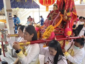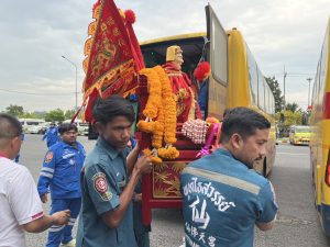 วันที่ 4 มีนาคม 2568 ขบวนนมัสการพระพุทธบาท สระบุรี ที่ได้อันเชิญ องค์โจวซือ องค์เจ้าแม่ลิ้มกอเหนี่ยว องค์แปะกง องค์นาจาไทจื้อ เพื่อออกโปรดสาธุชน และศิษยานุศิษย์ ตามจุดต่างๆ ทั้งขาไปและขากลับ ได้เดินทางจุดนัดหมายบริเวณถนนลพบุรีราเมศวร์ก่อนถึงแยกบิ๊กซี หลังจากนั้นมีการเปลี่ยนถ่ายองค์พระขึ้นประทับรถกระบะออกเวียนรอบเมือง เพื่อความเป็นสิริมงคลของชาวหาดใหญ่ หลังจากนั้น เวลา 14.19 น. ขบวนพระได้มาถึงมูลนิธิมิตรภาพสามัคคี(ท่งเซียเซี่ยงตึ๊ง) หาดใหญ่ และได้เคลื่อนย้ายองค์พระเข้าประดิษฐานภายในวิหารองค์หลวงปู่ไต้ฮงโจวซือ เป็นที่เรียบร้อย
