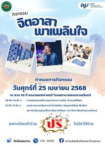 ขอเชิญชวนผู้สนใจ เข้าร่วมกิจกรรม “จิตอาสา พาเพลินใจ” ข่าวด่วน 22 เม.ย. 2025 135 share tweet share ขอเชิญชวนผู้สนใจ เข้าร่วมกิจกรรม “จิตอาสา พาเพลินใจ” วันศุกร์ที่ 25 เมษายน 2568 เวลา 09.30-12.00 น. ณ สวน 50 ปี คณะแพทยศาสตร์ โรงพยาบาลสงขลานครินทร์ สอบถามเพิ่มเติม : หน่วยส่งเสริมศิลปะและวัฒนธรรม โทร. 074-451125
