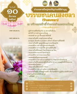 ขอเชิญพี่น้องประชาชนชาวหาดใหญ่ ร่วมพิธีทำบุญบรรพชนคนสงขลา (วันสงขลา) ในวันจันทร์ที่ 10 มีนาคม 2568 เวลา 06.30 น. ณ บริเวณหน้าที่ว่าการอำเภอหาดใหญ่ อำเภอหาดใหญ่ จังหวัดสงขลา เพื่อรำลึกถึงพระคุณของบรรพบุรุษที่สร้างบ้านสร้างเมืองสงขลาให้พวกเราอยู่กันอย่างร่มเย็นเป็นสุขมาจนถึงปัจจุบัน