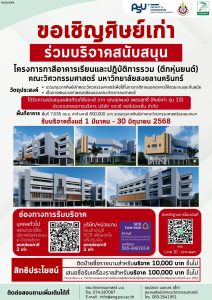 – คุณนิรดา นนทะสร (ตั๊ก) สมาคมศิษย์เก่าคณะวิศวกรรมศาสตร์ โทร. 083-2641951