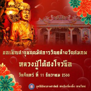 คณะกรรมการมูลนิธิมิตรภาพสามัคคี (ท่งเซียเซี่ยงตึ๊ง) หาดใหญ่ ขอเชิญสาธุชนทั้งหลาย นมัสการวันคล้ายวันสมภพหลวงปู่ไต้ฮงโจวซือ ในวันจันทร์ ที่11 ธันวาคม 2566 โดยทางมูลนิธิฯได้จัดเตรียมหมี่หวานมงคลให้รับประทานเพื่อความเป็นสิริมงคล การค้าขายเจริญรุ่งเรือง อายุมั่นขวัญยืน พร้อมด้วยคณะศิษยานุศิษย์ได้จัดโรงทานเลี้ยงอาหาร และกลางคืนมีภาพยนต์ฉายกลางแปลงให้ชม ณ บริเวณหน้าศาลเจ้าหลวงปู่ไต้ฮงโจวซือ จึงแจ้งมาให้ทราบโดยทั่วกัน