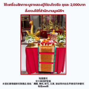 และในโอกาสเดียวกันนี้ ทางมูลนิธิฯได้จัดโต๊ะพร้อมเครื่องสักการะบูชา เพื่อให้สาธุชนได้ร่วมเฉลิมฉลองแสดงมุทิตาจิต ถวายเครื่องสักการะบูชาโดยพร้อมเพียงกันในวันดังกล่าว (สั่งจองโต๊ะเครื่องสักการะได้ที่สำนักงานมูลนิธิฯ ชุดละ2,000บาท)