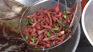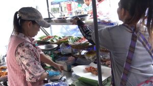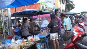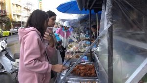 ช่วงกินเจก็ยังคงขายปกติอยู่ ที่ผ่านมาช่วงหลังๆก็ดีขึ้น แต่ว่าของจะแพงเยอะหน่อย คิดเสียว่า เราอยู่ได้ ลูกค้ากินได้ ก็โอเคแล้ว ไม่ได้อะไรมากมาย สำหรับปีที่ผ่านมาช่วงเทศกาลกินเจ ก็ไม่กระทบมาก คนที่ไม่ทานเจก็เยอะอยู่ พอถึงช่วงเจก็เฉยๆ ยังขายได้ปกติ เพราะว่าเรายังขายราคา 20 บาทเหมือนเดิม ส่วนเป็นขีดก็ขีดละ 45 บาท ซึ่งเป็นราคาเดิม แม่ค้าอยู่ได้ ลูกค้ากินได้ ก็ยังโอเคอยู่
