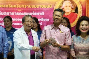 วันนี้ (12 ต.ค. 66) นายสมนึก พรหมเขียว ผู้ว่าราชการจังหวัดสงขลา ร่วมงานวันทันตสาธารณสุขแห่งชาติ ประจำปี 2566 และงานเปิดกระปุกออมเงิน โครงการวันละเหรียญ กองทุนเฉลิมพระเกียรติ 100 ปี สมเด็จย่า ครั้งที่ 13 เพื่อร่วมสืบสานปณิธาน สมเด็จพระศรีนครินทราบรมราชชนนี ที่ทรงห่วงใยในปัญหาทางทันตสุขภาพของพสกนิกรชาวไทย โดยมีนายสมพร ใช้บางยาง ประธานกรรมการบริหารกองทุนเฉลิมพระเกียรติ 100 ปี สมเด็จย่าฯ เป็นประธานในพิธี พร้อมด้วยผู้ช่วยศาสตราจารย์ ทันตแพทย์วรรธนะ พิธพรชัยกุล คณบดีคณะทันตแพทยศาสตร์ หน่วยงานภาครัฐ ภาคเอกชน และบุคลากรของคณะทันตแพทยศาสตร์เข้าร่วม ณ ลานอเนกประสงค์ ชั้น 7 คณะทันตแพทยศาสตร์ มหาวิทยาลัยสงขลานครินทร์ อำเภอหาดใหญ่ จังหวัดสงขลา