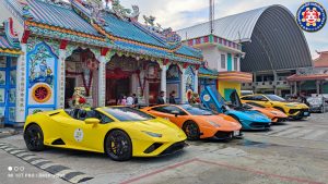 เมื่อวานนี้ (10 ตุลาคม 2566) เวลา 16.30 คุณรุ่งรัตน์ ชัยจีระธิกุล นายกสมาคมสมาพันธ์ธุรกิจการท่องเที่ยวจังหวัดสงขลา ได้นำหัวหน้าคณะพร้อมทีมงานนักสะสมรถซูเปอร์คาร์ลัมโบร์กินี (Lamborghini) อันดับหนึ่งของประเทศไทย เข้าเยี่ยมมูลนิธิฯ พร้อมนมัสการองค์หลวงปู่ไต่ฮงโจวซือ และองค์พระต่างๆ ในศาลหลวงปู่ไต่ฮงโจวซือ เพื่อขอพรจากสิ่งศักดิ์สิทธิ์ ก่อนจะเดินทางไปรัฐปีนัง โดยทางมูลนิธิฯ นำโดยคุณกิตติชัย ธรรมศิริพงษ์ รองประธานมูลนิธิฯ ,คุณนิพัชร ชีววัฒนาพงศ์ รองประธานมูลนิธิฯ พร้อมด้วยคณะกรรมการ หัวหน้าแผนกฯ ให้การต้อนรับ ทางคณะนักสะสมรถซูเปอร์คาร์ลัมโบร์กินี (Lamborghini) ได้มีการนำรถ Lamborghini จำนวน 5 คัน มูลค่าร่วม 150 ล้านบาท เข้ามาจอดหน้าศาลหลวงปู่ไต่ฮงโจวซือ ให้นักท่องเที่ยวและประชาชนที่ได้เข้ามานมัสการองค์พระภายในมูลนิธิฯ ได้เก็บภาพเป็นที่ระลึกกัน ในการมาของคณะนักสะสมรถซูเปอร์คาร์ลัมโบร์กินี (Lamborghini) ในครั้งนี้มีวัตถุประสงค์เพื่อประชาสัมพันธ์โปรโมทส่งเสริมการท่องเที่ยวของเมืองหาดใหญ่ และจุดแวะที่เลือกมูลนิธิฯ อันเนื่องมาจากมูลนิธิฯ เป็นสถานที่มีความสำคัญทางประวัติศาสตร์และวัฒนธรรมของเมืองหาดใหญ่มีอายุการก่อตั้งมายาวนาน หลังจากทางคณะนักสะสมรถซูเปอร์คาร์ลัมโบร์กินี (Lamborghini) นมัสการองค์พระเสร็จเป็นที่เรียบร้อยแล้วได้ร่วมกันทำบุญบริจาคให้กับทางมูลนิธิฯ โดยมีคุณนิพัชร ชีววัฒนาพงศ์ รองประธานมูลนิธิฯ เป็นตัวแทนรับมอบ