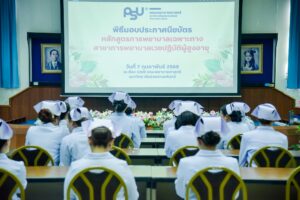 เมื่อวันที่ 7 กุมภาพันธ์ 2569 เวลา 09.00-12.00 น. คณะพยาบาลศาสตร์ จัดพิธีมอบประกาศนียบัตร หลักสูตรฝึกอบรมการพยาบาลเฉพาะทาง สาขาการพยาบาลเวชปฏิบัติผู้สูงอายุ โดยได้รับเกียรติจาก ผศ.ดร.ลัพณา กิจรุ่งโรจน์ เป็นประธานในพิธีเปิด ณ ห้อง 3309 อาคาร 3 ดวงวดี สังโขบล คณะพยาบาลศาสตร์