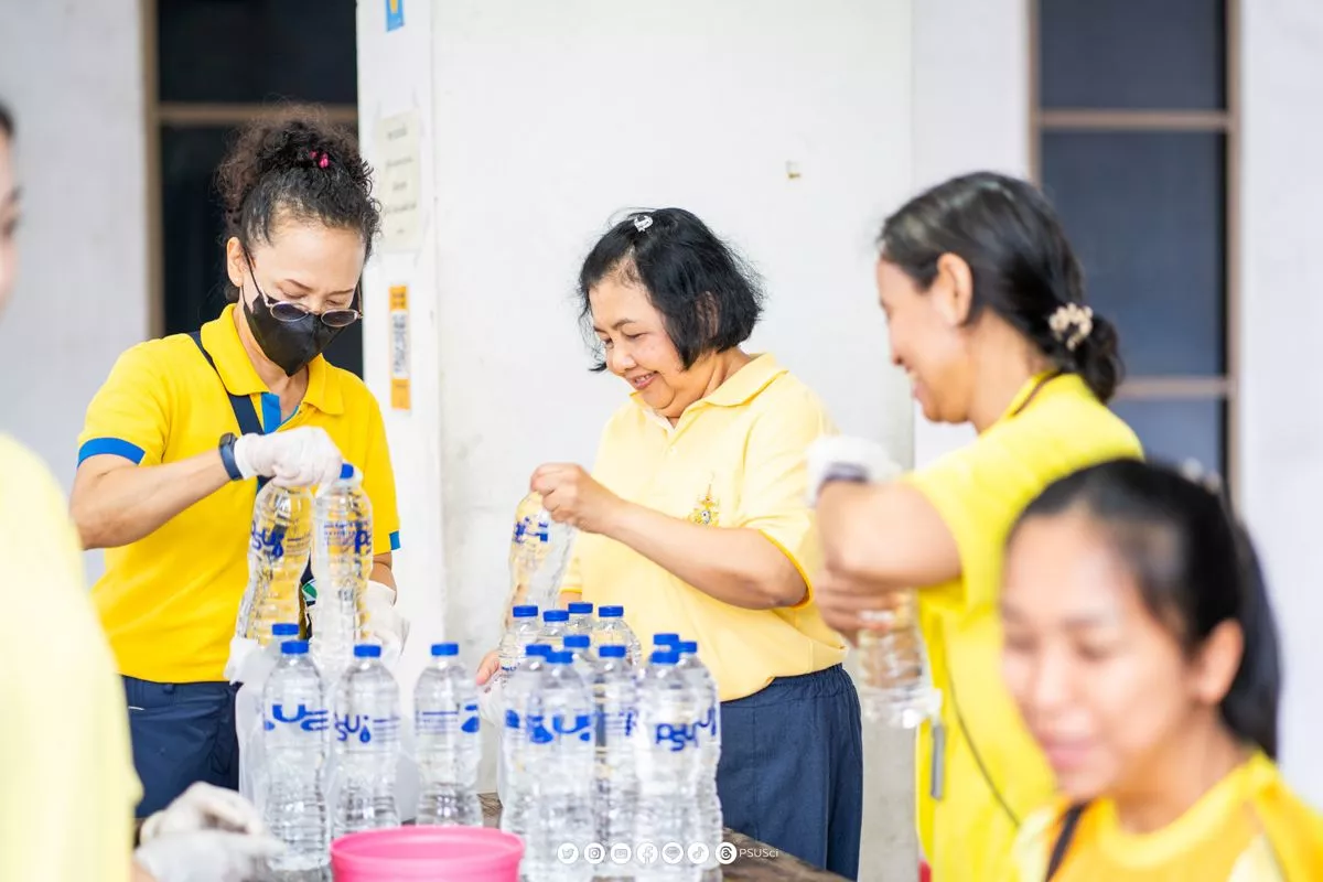 คณะวิทยาศาสตร์ มหาวิทยาลัยสงขลานครินทร์ ร่วมกับบุคลากร นักศึกษา และจิตอาสา จัดกิจกรรม “ใส่เหลืองรวมใจ ช่วยน้ำท่วมใต้” เพื่อแสดงความอาลัยแด่ในหลวงรัชกาลที่ 9 และร่วมกันผลิตน้ำดื่มสะอาดจำนวน 20,000 ขวด ส่งมอบให้กับพี่น้องประชาชนผู้ประสบภัยน้ำท่วมในพื้นที่ภาคใต้ ในวันศุกร์ที่ 5 ธันวาคม 2567 เวลา 09.00 – 17.00 น. ณ ศูนย์บริการตรวจสอบและรับรองมาตรฐาน คณะวิทยาศาสตร์ มหาวิทยาลัยสงขลานครินทร์ (บริเวณไดโนเสาร์) โดยมี รองศาสตราจารย์ ดร.อุราพร วงศ์วัชรานนท์ เป็นประธาน
