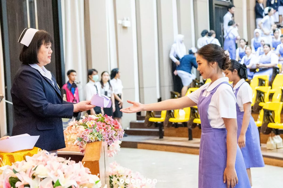 เมื่อวันที่ 13 พฤศจิกายน 2567 ที่ผ่านมา ณ ห้อง L1 ศูนย์ปาฐกถาประดิษฐ เชยจิตร (ตึกฟักทอง) คณะวิทยาศาสตร์ มหาวิทยาลัยสงขลานครินทร์ โดย รองศาสตราจารย์ ดร. อุราพร วงศ์วัชรานนท์ รองคณบดีฝ่ายพัฒนาบุคลากรและวิทยาศาสตร์สุขภาพ ได้เข้าร่วมเป็นเกียรติในพิธีรับหมวก เข็มมหาวิทยาลัย และเข็มคณะพยาบาลศาสตร์ ประจำปีการศึกษา 2567 พร้อมทั้งร่วมเป็นสักขีพยานในการส่งมอบตะเกียงไนติงเกล ซึ่งเป็นสัญลักษณ์อันทรงเกียรติที่บ่งบอกถึงเจตนารมณ์ของนักศึกษาพยาบาลในการเป็นผู้ให้ และอุทิศตนเพื่อการดูแลสุขภาพของผู้ป่วย