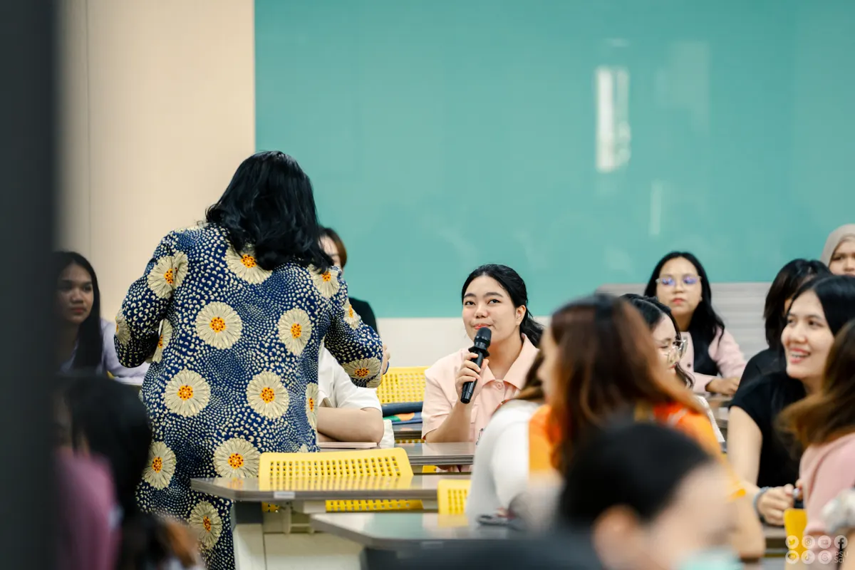 พร้อมรองศาสตราจารย์ ดร.พิมลศรี มิตรภาพอาทร รองคณบดีฝ่ายวิชาการ การศึกษา และวิเทศสัมพันธ์ ได้แนะนำภาพรวมของการศึกษาระดับบัณฑิตศึกษา ทั้งในด้านโครงสร้างหลักสูตร แนวทางการศึกษาวิจัย และช่องทางการขอรับทุนสนับสนุนของคณะฯ พร้อมชี้ให้เห็นความสำคัญของการมีทักษะการสื่อสารเชิงวิชาการและการทำงานร่วมกับที่ปรึกษาอย่างมีประสิทธิภาพ