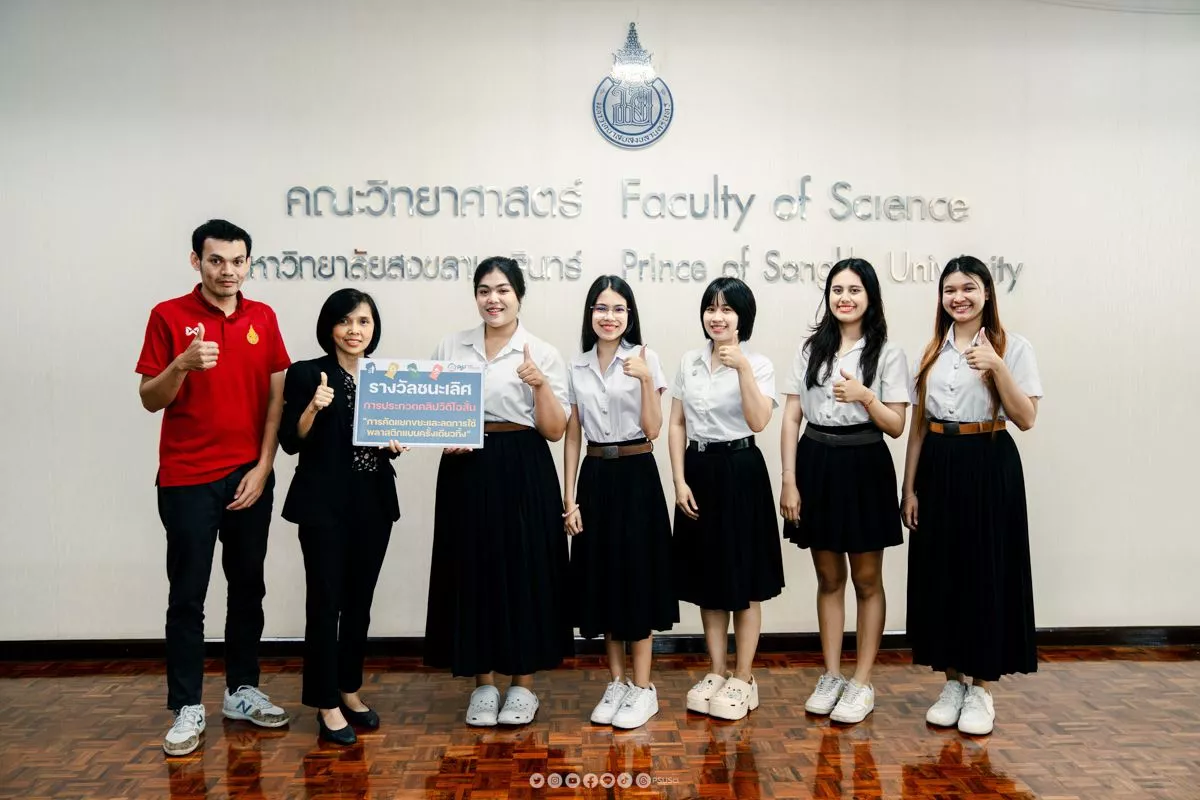 คณะวิทยาศาสตร์ มหาวิทยาลัยสงขลานครินทร์ จัดพิธีมอบรางวัลแก่ผู้ชนะการประกวดคลิปวิดีโอสั้น หัวข้อ “การคัดแยกขยะและลดการใช้พลาสติกแบบใช้ครั้งเดียวทิ้ง (Single-Use Plastic)” เมื่อวันที่ 25 กุมภาพันธ์ที่ผ่านมา เวลา 12.00 น. ณ อาคารบริหารคณะวิทยาศาสตร์