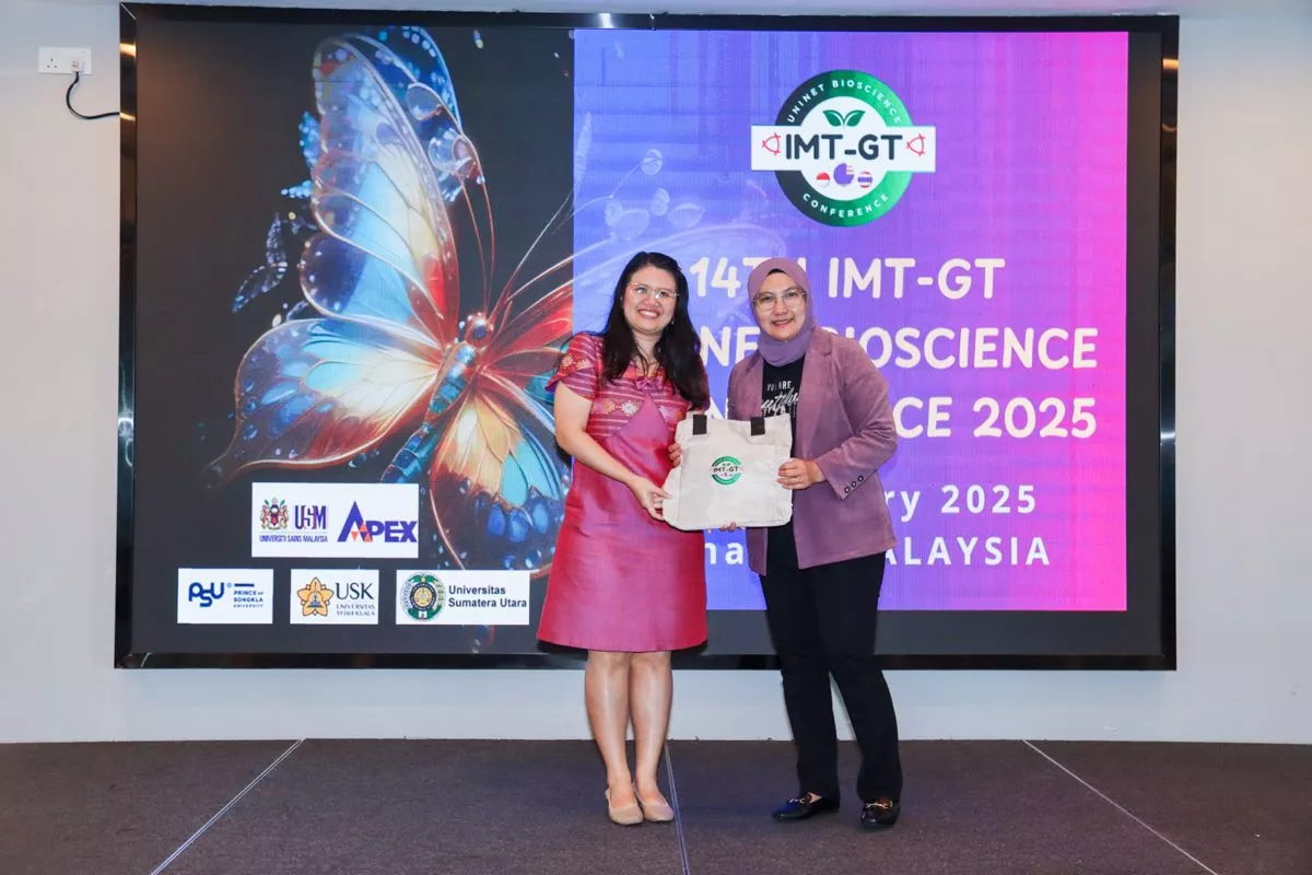 เมื่อวันที่ 7-8 กุมภาพันธ์ 2568 รองศาสตราจารย์ ดร. พิมลศรี มิตรภาพอาทร รองคณบดีฝ่ายวิชาการและวิเทศสัมพันธ์ คณะวิทยาศาสตร์ มหาวิทยาลัยสงขลานครินทร์ ได้รับเชิญเป็น Keynote Speaker บรรยายในหัวข้อ “Climate Change and Marine Pathogens: Challenges for Aquatic Food Safety” ในงานประชุมวิชาการ The 14th IMT-GT Uninet Bioscience 2025 ซึ่งจัดขึ้นภายใต้แนวคิด “Innovating a Sustainable Future: Advancing Biodiversity, Science, and Education” ณ Mercure Penang Beach Hotel, Universiti Sains Malaysia สหพันธรัฐมาเลเซีย โดยคณะวิทยาศาสตร์ มหาวิทยาลัยสงขลานครินทร์ ร่วมเป็นเจ้าภาพการจัดงานประชุมครั้งนี้