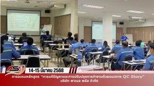 วันที่ 14-15 มีนาคม 2568 กลุ่มงานบริการวิชาการ คณะวิศวกรรมศาสตร์ จัดอบรมหลักสูตร”การแก้ปัญหาและการปรับปรุงการทำงานด้วยแนวทาง QC Story ” ให้กับบุคลากรของบริษัท พาเนล พลัส จำกัด จำนวน 35 คน โดยมีวัตถุประสงค์เพื่อให้ผู้เข้าอบรมเข้าใจความหมายและตระหนักถึง “คุณภาพและผลิตภาพ” ในมิติต่าง ๆ หลักการของกระบวนการแก้ปัญหาและปรับปรุงคุณภาพ (QC Story) ผ่านการฝึกปฎิบัติจากสถานที่ของผู้เรียนจริง ตลอดจนประยุกต์ใช้เครื่องมือในการแก้ปัญหาและปรับปรุงการทำงาน (7 QC Tools 7 New QC Tools และ IE techniques) ได้จริง โดยในวันดังกล่าวเป็นบรรยายและมีตัวอย่างกรณีศึกษาสำหรับการฝึกปฏิบัติ โดยได้รับเกียรติจาก รองศาสตราจารย์ ดร.เสกสรร สุธรรมานนท์ ผู้ช่วยอธิการบดีฝ่ายทรัพยากรบุคคล และอาจารย์ประจำสาขาวิชาวิศวกรรมอุตสาหการและการผลิต คณะวิศวกรรมศาสตร์ ม.อ. เป็นวิทยากรให้ความรู้พร้อมฝึกปฏิบัติในครั้งนี้