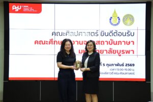 วันที่ 5 กุมภาพันธ์ 2569 ผู้บริหารคณะศิลปศาสตร์ มหาวิทยาลัยสงขลานครินทร์ วิทยาเขตหาดใหญ่ นำโดย ดร.พนิดา สุขศรีเมือง คณบดีคณะศิลปศาสตร์ พร้อมด้วย อาจารย์ชุติมา สว่างวารี รองคณบดีฝ่ายวิเทศสัมพันธ์ สื่อสารองค์กรและบริการวิชาการ และ ดร.อุษา อินทรักษา รองคณบดีฝ่ายบริหารและยุทธศาสตร์ ให้การต้อนรับคณะผู้บริหารและบุคลากรจากสถาบันภาษา มหาวิทยาลัยบูรพา