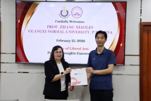 วันที่ 25 กุมภาพันธ์ 2569 คณะศิลปศาสตร์ มหาวิทยาลัยสงขลานครินทร์ ให้การต้อนรับ Prof. Zhang Xiaolin อาจารย์จาก College of Physical Education and Health, Guangxi Normal University สาธารณรัฐประชาชนจีน ซึ่งเดินทางมานิเทศนักศึกษาแลกปลี่ยนระดับบัณฑิตศึกษา จำนวน 14 ราย ที่กำลังศึกษารายวิชาวิจัยตามสาขาวิชาและความสนใจ ณ คณะศิลปศาสตร์