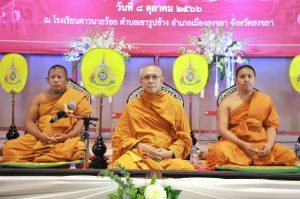บ่ายวันนี้ (8 ต.ค. 66) นายวรณัฎฐ์ หนูรอต รองผู้ว่าราชการจังหวัดสงขลา เป็นประธานฝ่ายฆราวาสในโครงการบรรพชาสามเณร และบวชศีลจาริณี ถวายเป็นพระราชกุศลแด่พระบาทสมเด็จพระบรมชนกาธิเบศร มหาภูมิพลอดุลยเดชมหาราช บรมนาถบพิตร “ดาวนายร้อยช่อใหม่ หัวใจแห่งศรัทธา รุ่นที่ 7” โดยมีพระครูวิรัตธรรมโชติ เจ้าคณะอำเภอเมืองสงขลา เป็นประธานฝ่ายสงฆ์และเป็นพระอุปัชฌาย์ พร้อมด้วยคณะผู้บริหารสถานศึกษา หัวหน้าส่วนราชการ คณะครู นักเรียน และเครือข่ายผู้ปกครองเข้าร่วม ณ โรงเรียนดาวนายร้อย อำเภอเมืองสงขลา