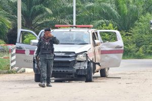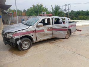 คนร้ายลอบวางระเบิดรถตำรวจสภ.เทพาบริเวณหน้าโรงไฟฟ้าชีวมวลเทพาระหว่างออกลาดตระเวนบาดเจ็บ 2 นาย