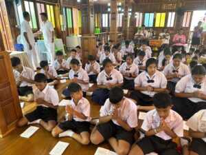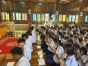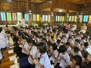 บรรยากาศภายในงานเต็มไปด้วยความสงบและศรัทธา คณะครูและนักเรียนต่างมีจิตใจที่ตั้งมั่น มีสมาธิและความตั้งใจในการสวดมนต์และเวียนเทียน เพื่อถวายเป็นพุทธบูชาอย่างพร้อมเพรียง นับเป็นกิจกรรมที่ส่งเสริมคุณธรรม จริยธรรม และเสริมสร้างพลังศรัทธาทางศาสนาให้แก่เยาวชน อีกทั้งยังเป็นการสืบสานวัฒนธรรมประเพณีทางพระพุทธศาสนาให้คงอยู่สืบไป