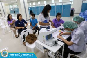 วันที่ 22 สิงหาคม 2568 เทศบาลเมืองคอหงส์ โดยกองสวัสดิการสังคม ร่วมกับ คลินิกเทคนิคการแพทย์ชุมชน มอ. ตรวจสุขภาพกลุ่มเสี่ยงคอหงส์ ประจำปี 2568 ให้กับตัวแทนคณะกรรมการชุมชนทั้ง 30 ชุมชน และ เจ้าหน้าที่เทศบาลเมืองคอหงส์ ที่มีอายุ 35 ปีขึ้นไปและอยู่ในกลุ่มเสี่ยงโรคไม่ติดต่อเรื้อรัง NCDs เช่น โรคไขมันในเลือดสูง โรคความดันโลหิตสูง โรคเบาหวาน โดยได้รับการสนับสนุนงบประมาณโครงการจากกองทุนหลักประกันสุขภาพเทศบาลเมืองคอหงส์ (สปสช.) ประจำปี 2568 รอบที่ 2 เพื่อตรวจคัดกรอง ป้องกัน ติดตามอาการ ลดอัตราการเจ็บป่วย และเข้าถึงการดูแลสุขภาพ การปรับเปลี่ยนพฤติกรรมได้อย่างถูกต้องเหมาะสม ณ ห้องประชุมชั้น 4 สำนักงานเทศบาลเมืองคอหงส์