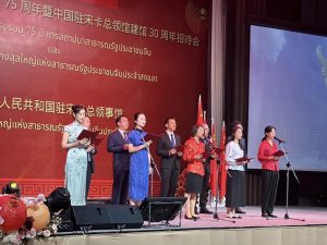 วันที่ 23 ก.ย. 67 เวลา 18.00 น. นายเอก ยังอภัย ณ สงขลา นายอำเภอหาดใหญ่ ร่วมงานฉลองครบรอบ 75 ปี การสถาปนาสาธารณรัฐประชาชนจีน และครบรอบ 30 ปี สถานกงสุลใหญ่แห่งสาธารณรัฐประชาชนจีนประจำสงขลา โดยมีนางอู๋ ตงเหมย กงสุลใหญ่แห่งสาธารณรัฐประชาชนจีนประจำสงขลา นายสมนึก พรหมเขียว ผู้ว่าราชการจังหวัดสงขลา นายอำพล พงศ์สุวรรณ ผู้ว่าราชการจังหวัดยะลา นางมณีรัตน์ พรหมเขียว นายกเหล่ากาชาดจังหวัดสงขลา นายอภิชาติ สาราบรรณ์ รองผู้ว่าราชการจังหวัดสงขลา หัวหน้าส่วนราชการ นายอำเภอ ข้าราชการ ผู้บริหารองค์กรปกครองส่วนท้องถิ่น นายพิชัย วัฒนะพยุงกุล ประธานสมาคมไทย-จีน จังหวัดสงขลา นายอรุณชัย ศิริมหาชัย ประธานกรรมการมูลนิธิมิตรภาพสามัคคี(ท่งเซียเซี่ยงตึ๊ง)หาดใหญ่ และแขกผู้มีเกียรติ เข้าร่วมฯ ณ ห้องแกรนด์คอนเวนชั่นฮอลล์ โรงแรม ลี การ์เดนส์ พลาซ่า หาดใหญ่ อำเภอหาดใหญ่ จังหวัดสงขลา