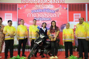 วันนี้ (19 เม.ย. 67) ที่เวทีกลาง สระบัวแหลมสมิหลา อำเภอเมือง จังหวัดสงขลา นายสมนึก พรหมเขียว ผู้ว่าราชการจังหวัดสงขลา เป็นประธานเปิดงานประจำปีและงานกาชาดจังหวัดสงขลา ซึ่งจัดขึ้นระหว่างวันที่ 19 – 28 เมษายน 2567 เพื่อกระตุ้นเศรษฐกิจภายในจังหวัด รวมถึงการดึงดูดนักท่องเที่ยวให้มาเที่ยวในจังหวัดสงขลามากยิ่งขึ้น โดยมี นางมณีรัตน์ พรหมเขียว นายกเหล่ากาชาดจังหวัดสงขลา พร้อมด้วยคณะรองผู้ว่าราชการจังหวัดสงขลา หัวหน้าส่วนราชการ นายอำเภอ คณะกรรมการและสมาชิกเหล่ากาชาดจังหวัดสงขลา ผู้บริหารองค์กรปกครองส่วนท้องถิ่น เจ้าหน้าที่ที่เกี่ยวข้องและประชาชนเข้าร่วม