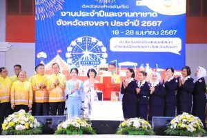 วันนี้ (19 เม.ย. 67) ที่เวทีกลาง สระบัวแหลมสมิหลา อำเภอเมือง จังหวัดสงขลา นายสมนึก พรหมเขียว ผู้ว่าราชการจังหวัดสงขลา เป็นประธานเปิดงานประจำปีและงานกาชาดจังหวัดสงขลา ซึ่งจัดขึ้นระหว่างวันที่ 19 – 28 เมษายน 2567 เพื่อกระตุ้นเศรษฐกิจภายในจังหวัด รวมถึงการดึงดูดนักท่องเที่ยวให้มาเที่ยวในจังหวัดสงขลามากยิ่งขึ้น โดยมี นางมณีรัตน์ พรหมเขียว นายกเหล่ากาชาดจังหวัดสงขลา พร้อมด้วยคณะรองผู้ว่าราชการจังหวัดสงขลา หัวหน้าส่วนราชการ นายอำเภอ คณะกรรมการและสมาชิกเหล่ากาชาดจังหวัดสงขลา ผู้บริหารองค์กรปกครองส่วนท้องถิ่น เจ้าหน้าที่ที่เกี่ยวข้องและประชาชนเข้าร่วม