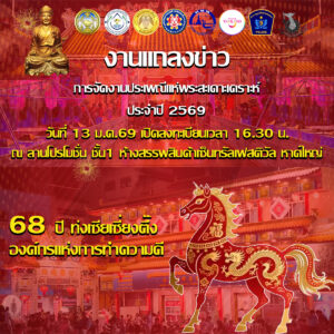 มูลนิธิมิตรภาพสามัคคี (ท่งเซียเซี่ยงตึ๊ง) หาดใหญ่ จัดงานแถลงข่าวการจัดงาน ประเพณีแห่พระสะเดาะเคราะห์ ปี 2569 ณ ลานโปรโมชั่นชั้น1 ห้างสรรพสินค้าเซ็นทรัลเฟสติวัล หาดใหญ่ โดยเปิดให้ลงทะเบียนตั้งแต่เวลา 16.30 น. เป็นต้นไป