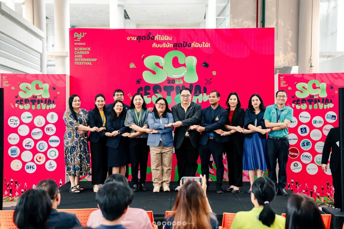 คณะวิทยาศาสตร์ มหาวิทยาลัยสงขลานครินทร์ จัดงาน SCI Festival ครั้งที่ 2 ภายใต้หัวข้อ “Level Up Your Career: เสริม Skill Set สุดปัง พิชิตอาชีพสายวิทย์” เพื่อส่งเสริมการพัฒนาทักษะและโอกาสในสายอาชีพวิทยาศาสตร์ โดยได้รับความสนใจจากนักศึกษาและผู้ประกอบการเป็นจำนวนมาก ซึ่งในงานได้รับเกียรติจากคณบดีคณะวิทยาศาสตร์ ศาสตราจารย์ ดร.อัญชนา ประเทพ กล่าวเปิดงานและมอบของที่ระลึกให้แก่ภาครัฐและเอกชนที่มาร่วมกิจกรรมกว่า 31 บริษัท ที่สำคัญยังได้เปิดรับนักศึกษาเข้าทำงานกว่า 323 ตำแหน่ง และเปิดรับนักศึกษาเข้าฝึกงานและสหกิจศึกษากว่า 131 ตำแหน่ง