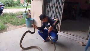 เมื่อเจ้าหน้าที่ฯไปถึงได้เดินเข้าไปดูที่บริเวณหลังชั้นวางของก็พบมีงูจงอางตัวใหญ่ขดตัวอยู่จริง จึงใช้อุปกรณ์ในการจับงูเข้าทำการจับงูจงอางทันที โดยใช้เวลาไม่นานนักก็สามารถจับงูจงอางไว้ได้ นำมาวัดได้ความยาว 3 เมตร จึงรีบนำใส่กระสอบเตรียมนำไปปล่อยคืนสู่ป่าธรรมชาติที่อยู่ห่างไกลบ้านเรือนผู้คนต่อไป