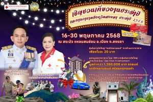 จังหวัดสงขลาขอเชิญเที่ยวงาน “งานประจำปีและงานกาชาดจังหวัดสงขลา ประจำปี 2568” จัดใหญ่จัดเต็ม!! 15 วัน 15 คืน เริ่มวันที่ 16-30 พฤษภาคม 2568 ณ สระบัว แหลมสนอ่อน อำเภอเมือง จังหวัดสงขลา