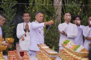 วันนี้ (4 กรกฎาคม 2567) ที่บ่อน้ำศักดิ์สิทธิ์ วัดแหลมบ่อท่อ อำเภอกระแสสินธุ์ จังหวัดสงขลา นายสมนึก พรหมเขียว ผู้ว่าราชการจังหวัดสงขลา เป็นประธานในพิธีพลีกรรมตักน้ำจากแหล่งน้ำศักดิ์สิทธิ์ เพื่อเฉลิมพระเกียรติพระบาทสมเด็จพระเจ้าอยู่หัว เนื่องในโอกาสมหามงคลเฉลิมพระชนมพรรษา 6 รอบ 28 กรกฎาคม 2567 มีคณะรองผู้ว่าราชการจังหวัดสงขลา ผู้บริหารระดับสูง ข้าราชการพลเรือน นายอำเภอ ทหาร ตำรวจ องค์กรปกครองส่วนท้องถิ่น ผู้นำชุมชนและประชาชนในพื้นที่เข้าร่วมจำนวนมาก