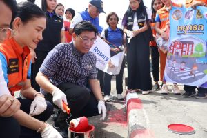 โอกาสนี้ รองผู้ว่าราชการจังหวัดสงขลา ได้นำคณะส่วนราชการร่วมกันปรับปรุงความปลอดภัยบริเวณทางม้าลายหน้าโรงเรียนแจ้งวิทยา โดยช่วยกันทาสีริมฟุตบาทให้มีความชัดเจนและสะท้อนแสงมากขึ้น เพื่อเพิ่มทัศนวิสัยแก่ผู้ขับขี่ พร้อมทั้งโบกธงเป็นสัญลักษณ์เปิดกิจกรรม และนำนักเรียนเดินข้ามทางม้าลายอย่างเป็นระเบียบ สื่อถึงความสำคัญของการใช้ทางข้ามอย่างถูกต้องและปลอดภัย ตอกย้ำแนวคิดในการสร้างวัฒนธรรมการสัญจรที่ให้ความสำคัญกับชีวิตและความปลอดภัยของผู้ใช้ถนนทุกคน