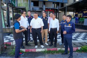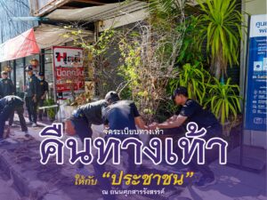 (22 ส.ค.68) นายกแป้น ลงพื้นที่พร้อมคณะผู้บริหาร หัวหน้าส่วนราชการ และเจ้าหน้าที่เทศกิจ ขอความร่วมมือประชาชน พ่อค้า แม่ค้า ร้านค้า ร้านอาหาร ร่วมเปิดพื้นที่ทางเท้า เพื่อจัดระเบียบปรับปรุงทางเท้า ให้สามารถสัญจรได้อย่างปลอดภัย มีภูมิทัศน์บ้านเมืองเป็นระเบียบร้อยและสวยงาม ณ ถ.ศุภสารรังสรรค์