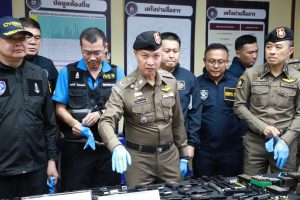 จับกุมขบวนการหลอกลงทุน เชื่อมโยงเครือข่ายขายปืนออนไลน์ จับผู้ต้องหา 6 ราย พบอาวุธปืนที่ผลิตเองและดัดแปลง 18 กระบอก มูลค่าความเสียหายกว่า 7 แสนบาท