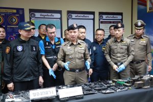 จับกุมขบวนการหลอกลงทุน เชื่อมโยงเครือข่ายขายปืนออนไลน์ จับผู้ต้องหา 6 ราย พบอาวุธปืนที่ผลิตเองและดัดแปลง 18 กระบอก มูลค่าความเสียหายกว่า 7 แสนบาท
