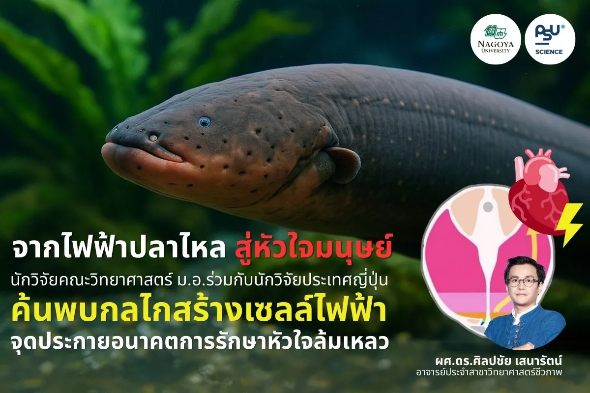 ทีมนักวิทยาศาสตร์จากมหาวิทยาลัยสงขลานครินทร์ โดย ผศ.ดร.ศิลปชัย เสนารัตน์ ร่วมกับมหาวิทยาลัยนาโกย่า และสถาบันวิจัยจากญี่ปุ่น เผยความก้าวหน้าครั้งสำคัญของโลกวิทยาศาสตร์ กับการค้นพบ “เซลล์ต้นกำเนิด” ที่อาจพัฒนาเป็นเซลล์ไฟฟ้าในปลาไหลไฟฟ้า ซึ่งเป็นสัตว์ที่สามารถปล่อยกระแสไฟฟ้าแรงสูงถึง 860 โวลต์ได้อย่างเป็นธรรมชาติ งานวิจัยชิ้นนี้ตีพิมพ์ในวารสาร Developmental Biology ฉบับพฤษภาคม 2568 และถือเป็นก้าวแรกสู่ความเข้าใจ “วิธีการสร้างเซลล์ที่สร้างไฟฟ้าได้จริงในร่างกาย”