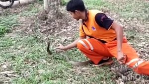 เมื่อ จนท.ไปถึงพบงูติดอยู่ภายในไซดักปลา จึงได้เดินเข้าไปดูปรากฎว่าเป็นงูจงอางตัวใหญ่ ยาวประมาณ 3 เมตรเศษ จึงรีบเปิดปากไซดักปลา พร้อมกับนำอุปกรณ์ในการจับงูออกมาจับงูจงอางทันที โดยงูจงอางอยู่ในไซ แสดงอาการดุร้าย อยู่ตลอดเวลา ใช้เวลานานประมาณเกือบ 5 นาที ก็สามารถจับงูจงอางตัวใหญ่ไว้ได้ รีบนำลังพลาสติก เตรียมนำไปปล่อยคืนสู่ป่าธรรมชาติที่อยู่ห่างไกลบ้านเรือนผู้คน เพื่อความปลอดภัยต่อไป