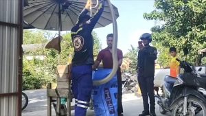 ตกใจสุดขีด!เจ้าของร้านขายน้ำชงพบจงอางยักษ์ซุกถังล้างแก้ว